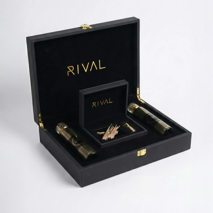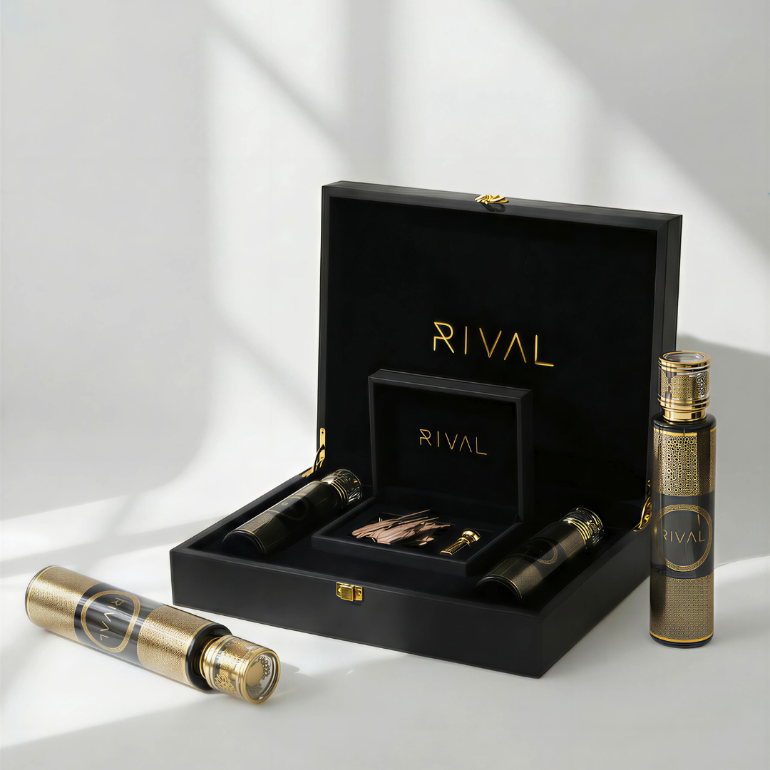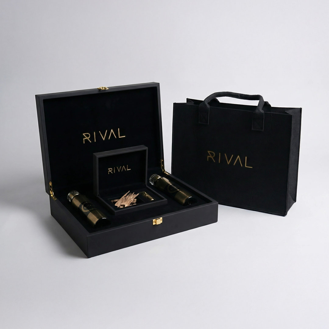 بوكس الفخامة VIP هي تجربة عطرية استثنائية صُممت لعشّاق التميز والرقي، وتأتي محفوظة داخل صندوق خشبي أسود أنيق مزوّد بلمسات ذهبية فاخرة وشعار RIVAL الذهبي في الحجرة المركزية. تعكس هذه العلبة أعلى معايير الفخامة، لتكون خيارًا مثاليًا للهدايا الراقية أو للإضافة إلى مجموعة عطور شخصية مميزة.