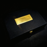 • صندوق خشبي فاخر باللون الأسود مع شعار RIVAL الذهبي وتجهيزات ذهبية